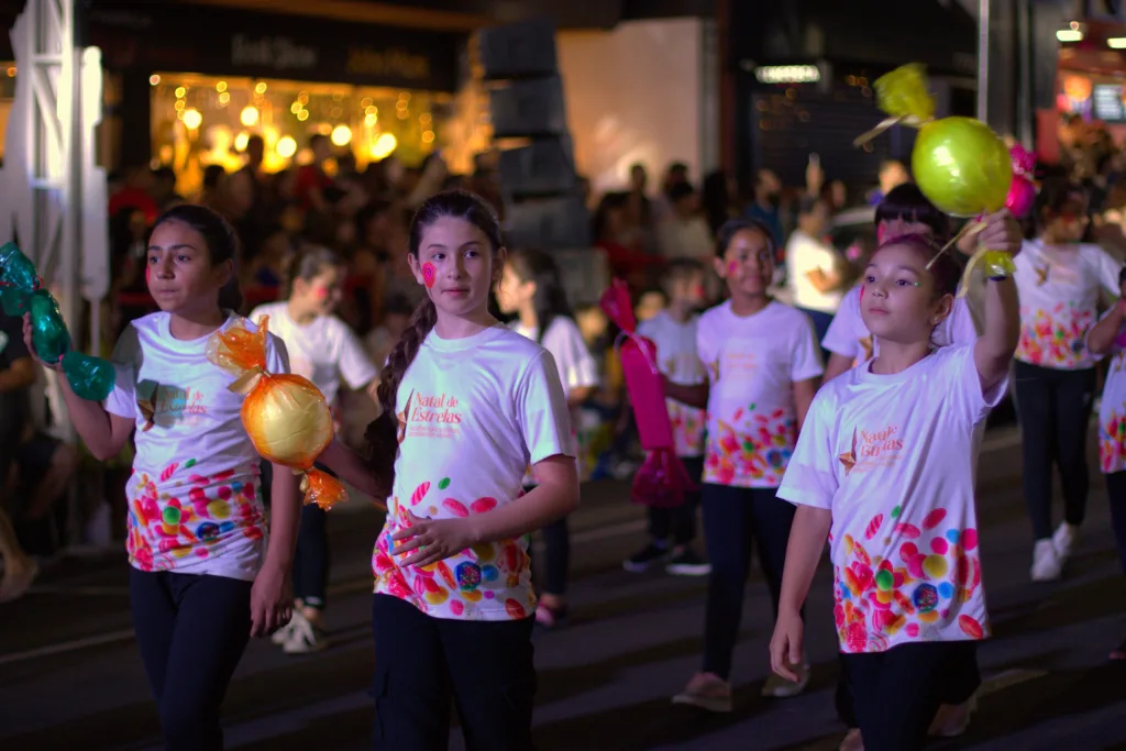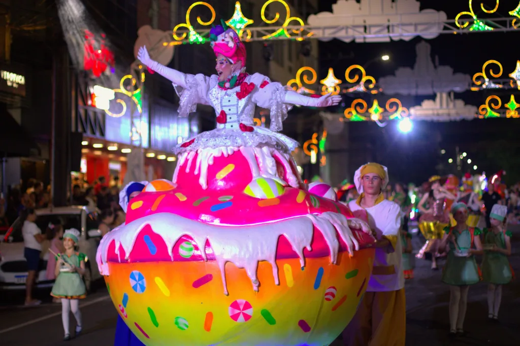 O cortejo seguiu o trajeto já conhecido do público, iniciando na esquina do Colégio Glória e terminando em frente à Prefeitura, próximo ao Espaço da Arte. Escolas, entidades, artistas e coletivos culturais desfilaram em mais de 60 alas, todas alinhadas à temática natalina.