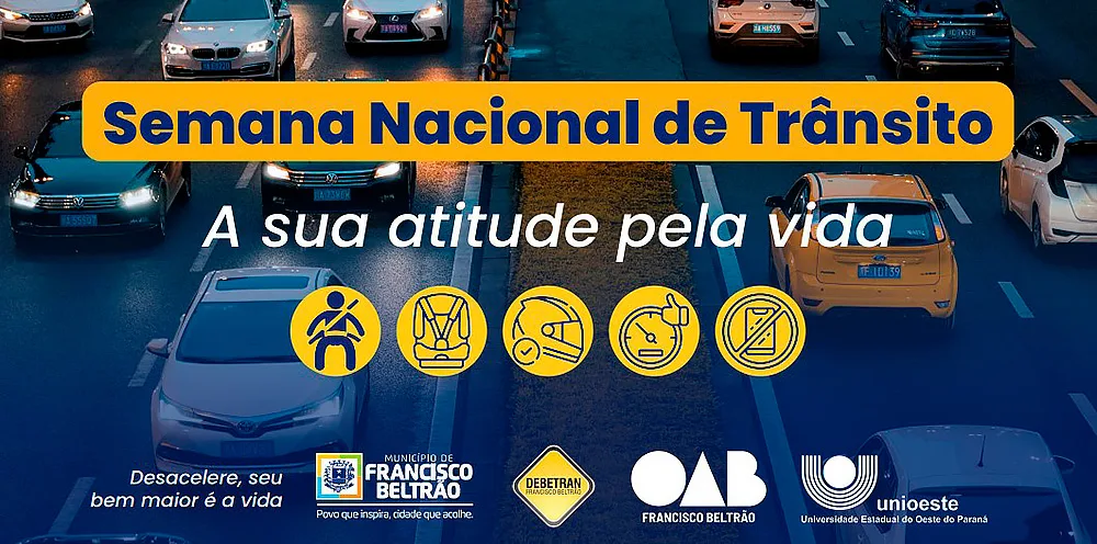 Hoje, 18, Francisco Beltrão inicia mais uma edição da Semana Nacional do Trânsito, campanha que busca reforçar a educação e ações de conscientização no trânsito. Em Francisco Beltrão, o Debetran (Departamento Beltronense de Trânsito) programou uma série de atividades para envolver diferentes públicos.