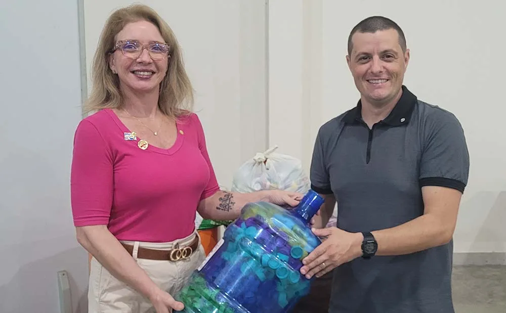 Um dos momentos marcantes da reunião foi a entrega de tampinhas plásticas de garrafas PET ao Rotary Club de Enéas Marques, clube afilhado do Rotary Industrial. A ação faz parte de um importante projeto desenvolvido pelo clube, que realiza a coleta e arrecadação de tampinhas com o envolvimento da comunidade.