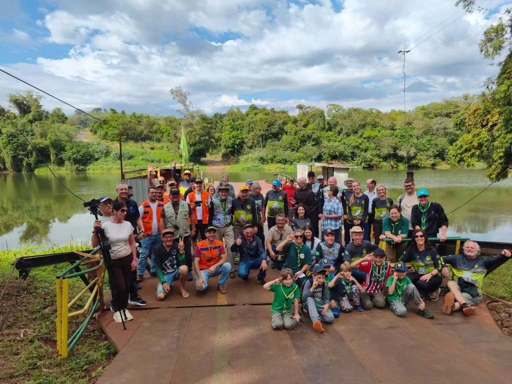 Participantes da 17ª Expedição do Riio Chopim na balsa que liga Verê a São Jorge D’Oeste.
