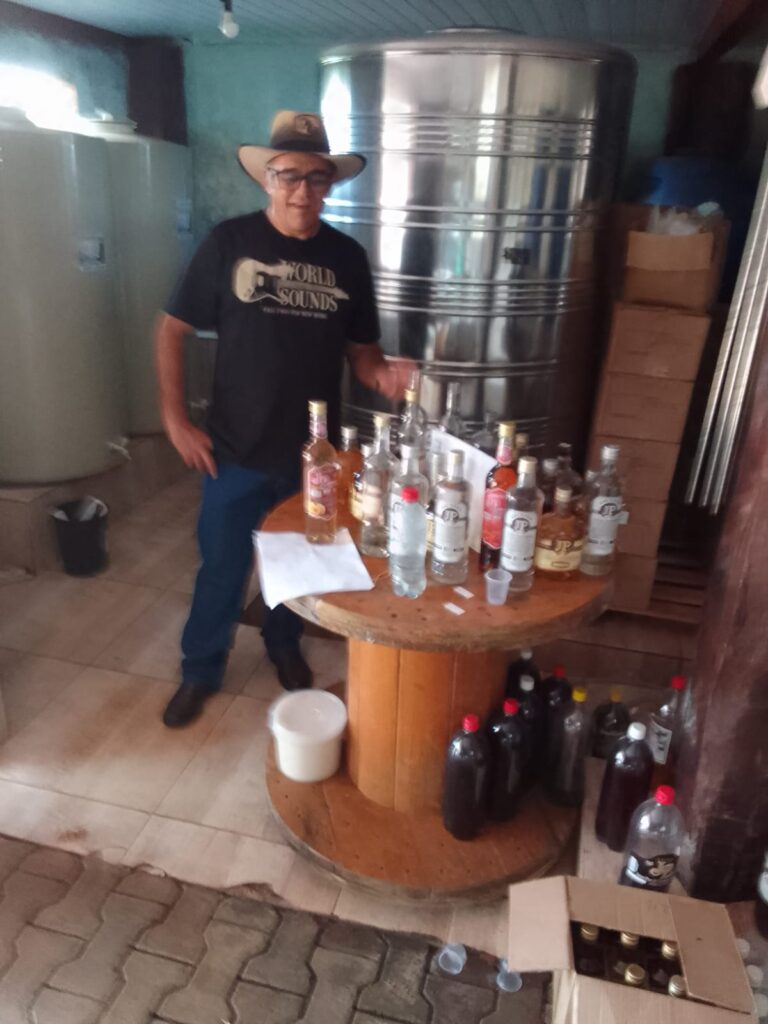 Juceli Aguiar, de Beltrão, foi até a Linha Nova Esperança, em Nova Prata do Iguaçu, no sítio de Cesar Pelizzari comprar pinga. Cesar faz pinga pura e misturada, com sabores de várias frutas. Tem pinga de banana, melão, abacaxi, melancia e muitas outras variedades. Juceli é cliente do Cesar há vários anos e recomenda, pra quem quiser tomar uma pinga de excelente qualidade, é só comprar do Cesar.