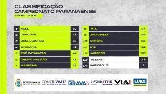 Acel, Cascavel, Dois Vizinhos e Operário Laranjeiras avançam direto para as quartas. Do quinto ao 12º, jogam as oitavas de final. Palmas e Aaema/Mariópolis foram rebaixados para a Série Prata.