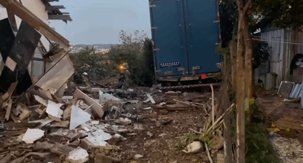 A casa atingida pelo caminhão ficou completamente destruída.