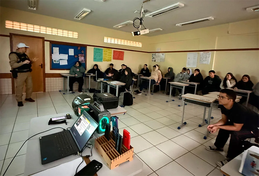 A equipe do Pelotão de Trânsito do 21° Batalhão de Polícia Militar (BPM) realizou, nesta segunda-feira (25), uma ação educativa com 40 alunos do Colégio João Paulo II, em Francisco Beltrão. A atividade integra o Projeto “Jovem no Trânsito”, que tem como objetivo promover a conscientização de jovens sobre segurança viária.