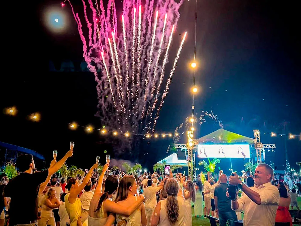 O réveillon do Santa Fé Clube de Campo reuniu cerca de 650 pessoas e, mesmo com a instabilidade na previsão do tempo, conseguiu manter o tradicional luau com música ao vivo para todos os gostos e um show de luzes para os sócios, com celebração ao redor da piscina.