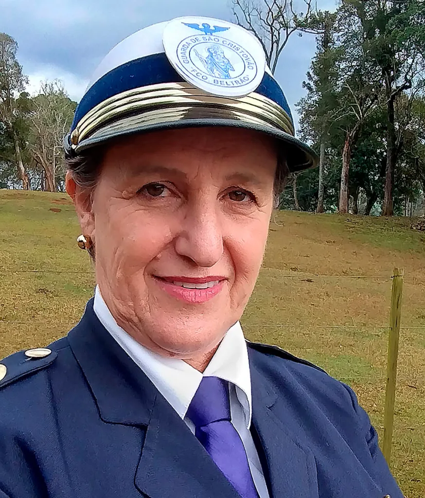 A paixão pelo trabalho comunitário foi alimentada por sua admiração pelo trabalho dos motoristas e colonos, profissionais que, segundo ela, representam a força motriz do desenvolvimento local. Essa admiração se transformou em uma oportunidade de engajamento há cerca de 25 anos, quando, ao acompanhar uma amiga, dona Margareth Crescêncio, se encantou com a farda da Guarda São Cristóvão e o espírito de serviço que ela representa.
