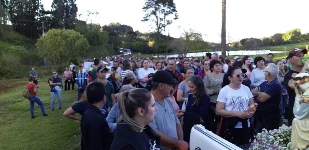 Ao longo do percurso as pessoas viram paisagens bonitas: açudes, patos, bovinos, matas, pinheiros, casas bonitas e lavouras de trigo já bem desenvolvidas. A chegada ocorreu por volta das 19h15, com fogos de artifício. Quem ficou no santuário pôde assistir a encenação da aparição da santa e apreciar o mondongo preparado pela equipe de cozinheiras.