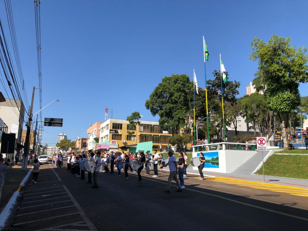 O desfile acontece na Rua Sete de Setembro, com o palanque de autoridades montado na Praça Ary Jaime Muller. O espaço recebeu diversas melhorias.