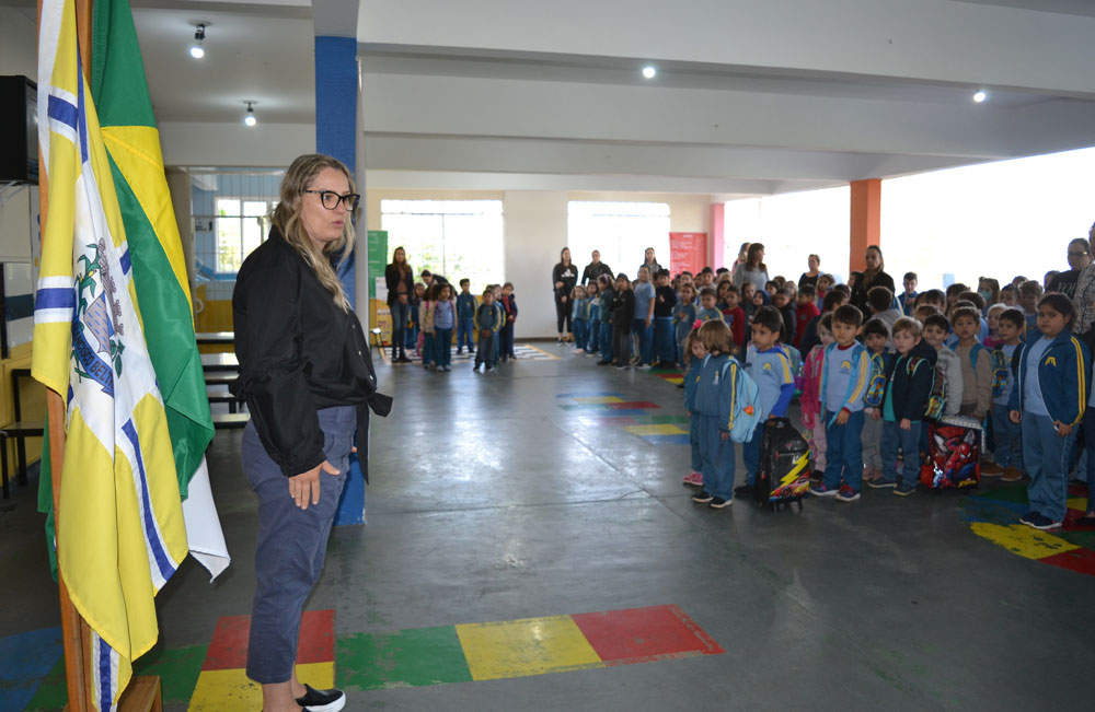 Ontem, começou a celebração da Semana da Pátria na Escola Maria Basso Dellani. Alunos, professores e pais de alunos se reuniram no saguão e passarela para cantar o Hino Nacional no fim da manhã. No fim da tarde a cerimônia se repetiu. Foi a primeira vez, depois de dois anos, que os alunos se reuniram no local para uma atividade. A suspensão de eventos foi adotada para evitar aglomerações e prevenção contra a propagação do coronavírus. Mas, agora, durante a Semana da Pátria, o Hino Nacional será cantado de manhã e de tarde. A diretora Sirlene Remboski dos Santos adianta que, após a Semana da Pátria, o Hino Nacional e o Hino de Francisco Beltrão voltarão a ser cantados uma vez por semana pelos alunos como determina a lei.