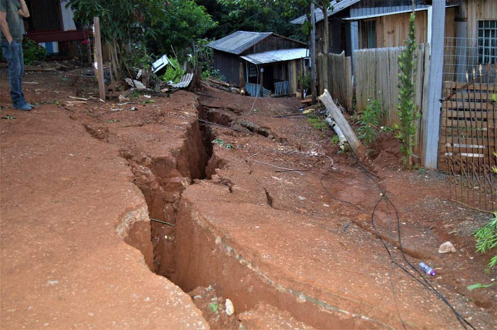 Leandro Czerniaski – O risco de desmoronamento no Bairro São Francisco é eminente. Defesa Civil e Prefeitura estão acompanhando a movimentação de terras no local onde uma fenda se abriu no chão, na madrugada de terça-feira, e desde então vem aumentando de tamanho. Ontem à tarde, o buraco já tinha cerca de 50 cm, mesmo tendo parado de chover.