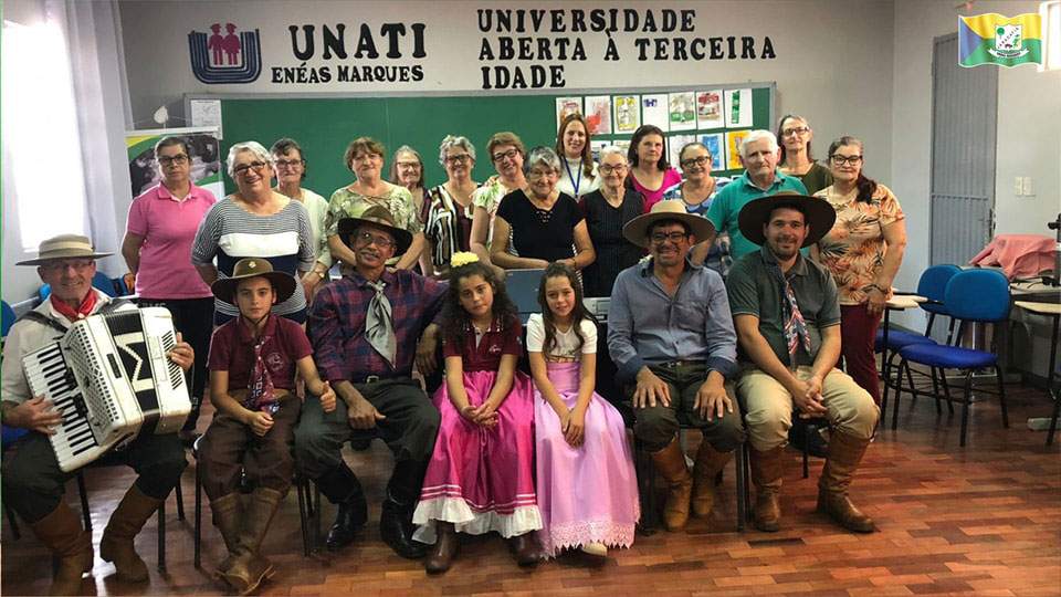 Da assessoria – Em comemoração ao Dia do Gaúcho, 20 de setembro, o Departamento de Assistência Social da Prefeitura de Eneas Marques realizou uma singela homenagem. O evento contou com participação de convidados especiais, entre eles, Olivaldo Ferreira Cristofoli e seu filho Geraldo Cristofoli, acompanhados dos netos Gabriel, Ana Vitória Souza e Izabelli Cristofoli e também Renato Cametin e Eliziário Pedrozo. Os alunos do Serviço de Convivência e Fortalecimento de Vínculos e a Turma da Universidade Aberta da Terceira idade (Unati) participaram da roda de conversas e histórias sobre a Semana Farroupilha e tradicionalismo gaúcho.
