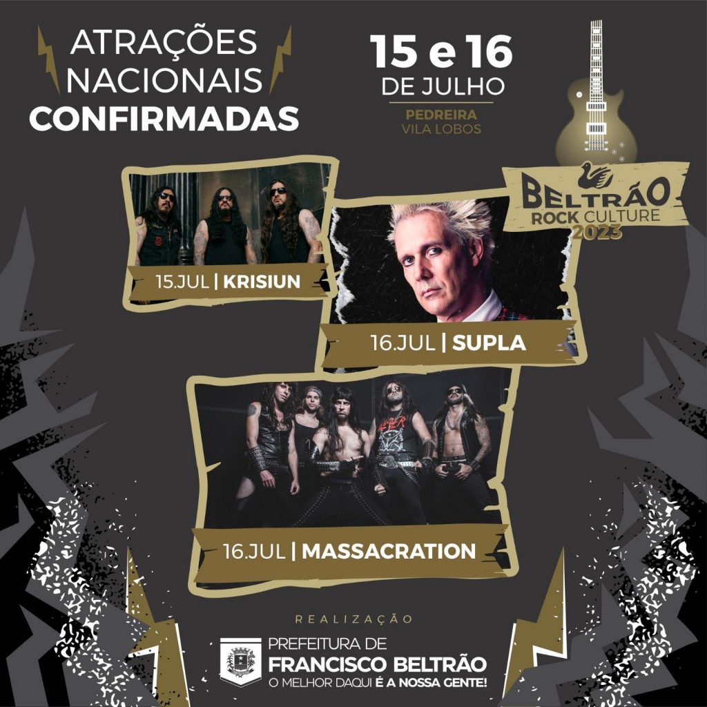 JdeB – A Prefeitura de Francisco Beltrão divulgou há pouco os primeiros shows confirmados do Rock Culture, evento que celebra o Dia Mundial do Rock.