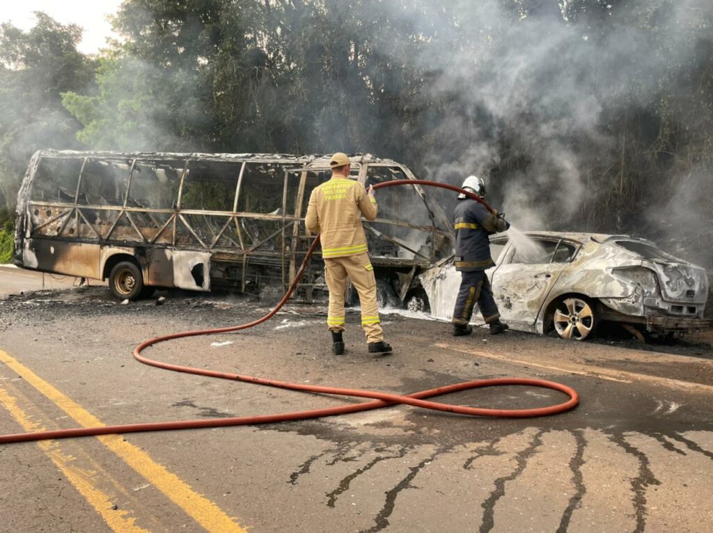 Um acidente grave na manhã desta sexta-feira, 9, na rodovia BR 280, em Marmeleiro, sentido a Flor da Serra do Sul, provocou a morte de uma pessoa e deixou outras duas feridas. A colisão, envolvendo um microônibus do município de Marmeleiro, que estava indo buscar estudantes, e automóvel GM/Cruze, de Bom Jesus do Sul, ocorreu por volta das 6h20. Logo após o impacto, os dois veículos pegaram fogo.