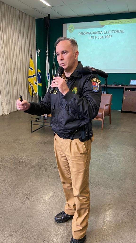 O major Rogério Gomes Pitz, comandante do 21º BPM, informou que os policiais do setor administrativo também estão trabalhando nas eleições, juntamente com com os policiais dos demais setores. Por enquanto, não houve maiores problemas. Surgiram denúncias de santinhos encontrados na frente de locais de votação. Major Piz concedeu entrevista à Rádio Princesa na manhã deste domingo, 2, de eleições gerais no Brasil.