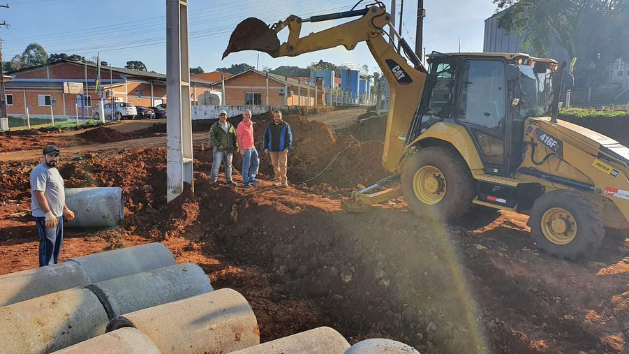 Da assessoria – Nesta semana, a equipe do Departamento de Obras e Urbanismo de Marmeleiro iniciou os trabalhos de colocação da tubulação pluvial na Rua Arcelino Bandeira, situada no Bairro Industrial. Os diretores de departamentos Vandré Signori (Finanças) e Everaldo Sobrinho de Oliveira (Obras e Urbanismo) estiveram vistoriando os trabalhos.