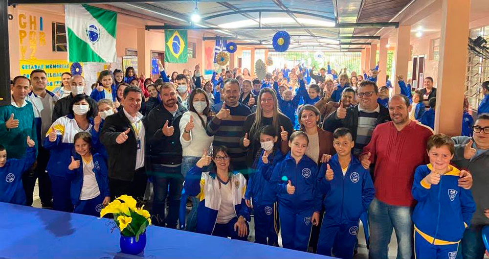 A comemoração dos 20 anos do Programa AABB Comunidade contou também com a presença do gerente do Banco do Brasil, Silvio Wiebbelling, presidente da Associação Atlética Banco do Brasil (AABB) Milton Magnabosco, secretária de Educação, Geovana Techio Lopes Belica, vereadores, professores, pais dos alunos, entre outros.