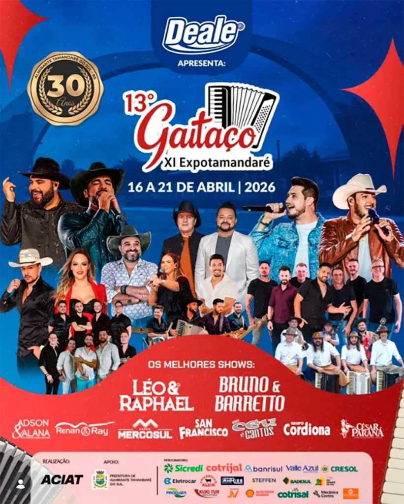 De 16 a 21 de abril acontece o 13º Encontro de Gaiteiros em Almirante Tamandaré do Sul (RS), considerado o maior evento do gênero no Brasil. A promoção é da Prefeitura local em parceria com o CTG Caboclo.